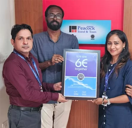 Indigo Airlines proudly celebrated the 18th anniversary of its successful partnership with the dedicated staff of Peacock Travel & Holidays Pvt Ltd, along with Mr. Anil Srinivasan & Mr. Rajeev KR, Directors of Peacock Travel & Holidays Pvt Ltd.